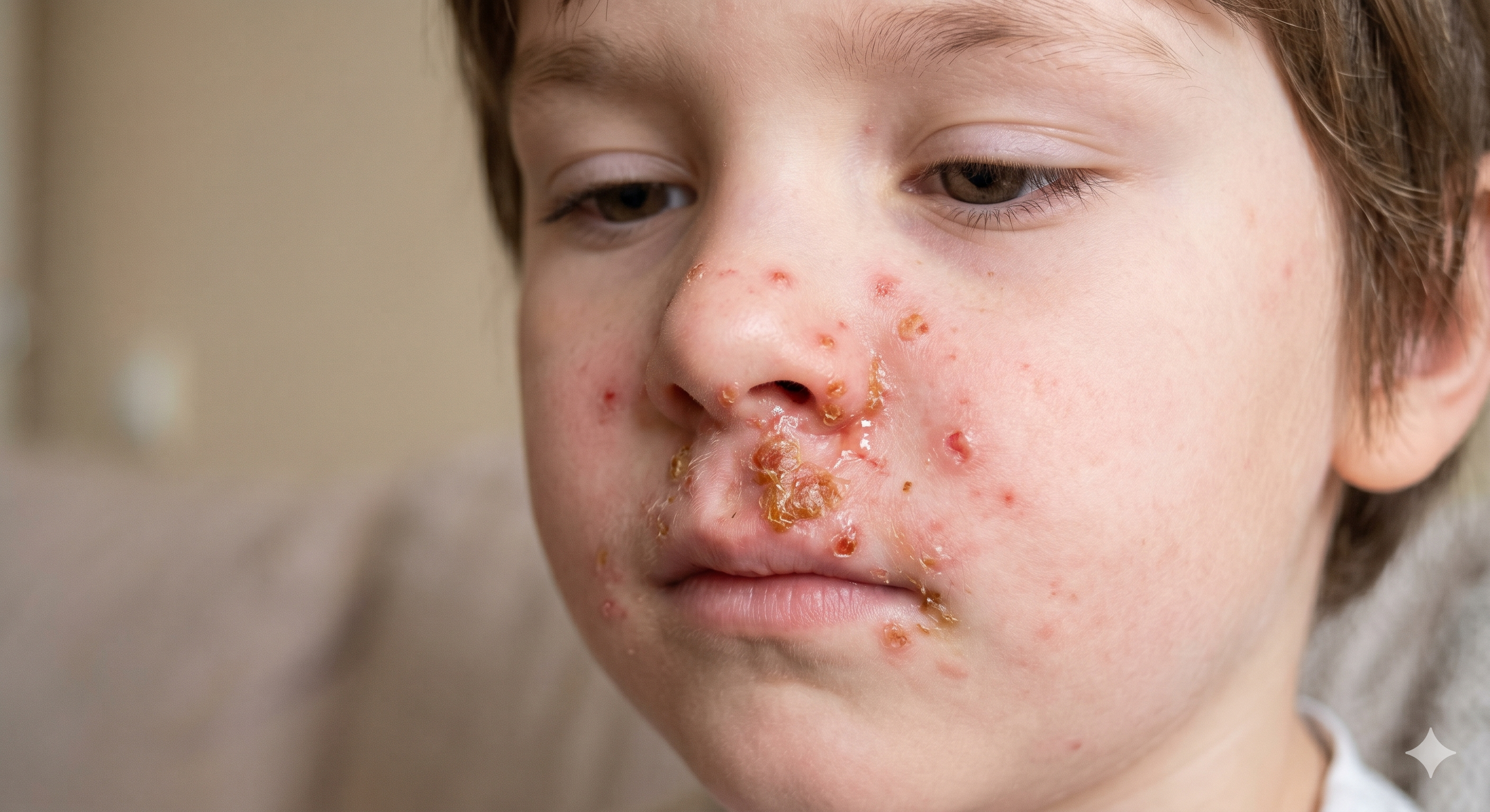 Infección bacteriana de la piel muy contagiosa, común en niños. Se caracteriza por llagas rojas que forman costras de color miel.